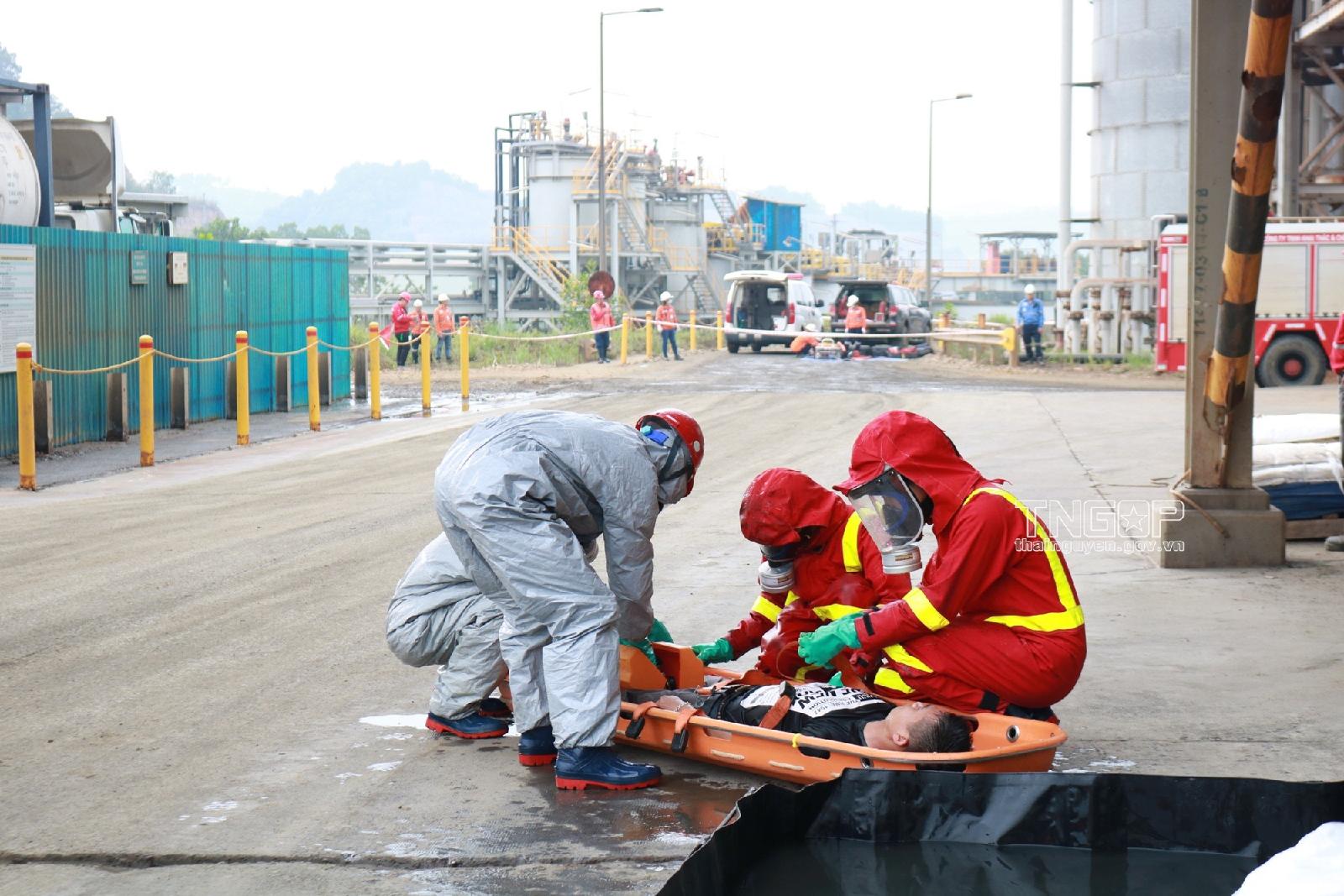 On November 30 afternoon, Nui Phao Mining Company Limited (Nui Phao Company) organized the practice of drilling plans to respond to chemical spills and rescue victims, under the guidance and supervision of the Environmental Safety Engineering Department, Department of Industry and Trade of Thai Nguyen province.