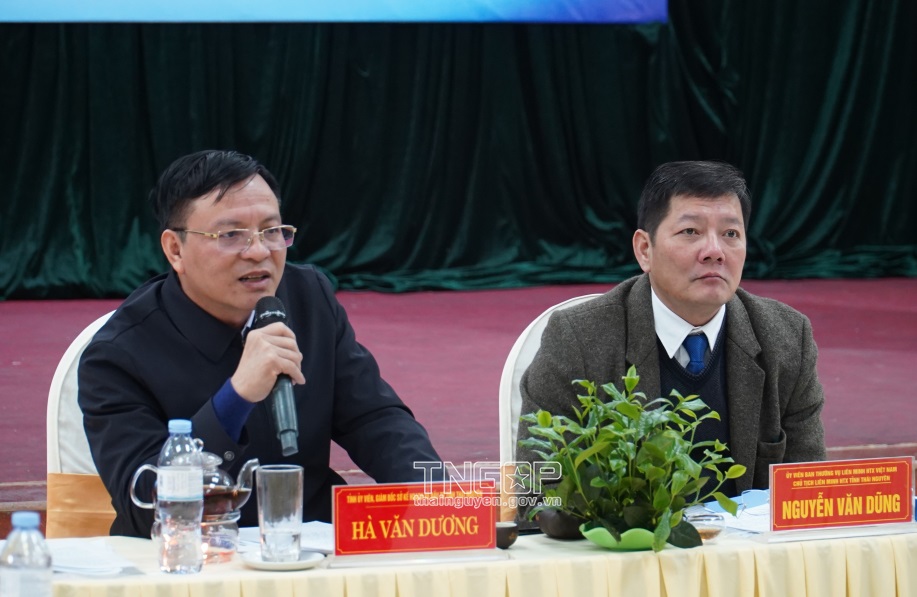 On December 21, Thai Nguyen Province Cooperative Alliance held a dialogue conference between the government and cooperative groups, cooperatives, cooperative unions and People's Credit Funds in the area. Mr. Ha Van Duong, Director of the Department of Planning and Investment, Deputy Head of the Steering Committee for Innovation and Development of Collective Economy (CE), Provincial Cooperative and Mr. Nguyen Van Dung, Chairman of the Provincial Cooperative Alliance chaired the dialogue.