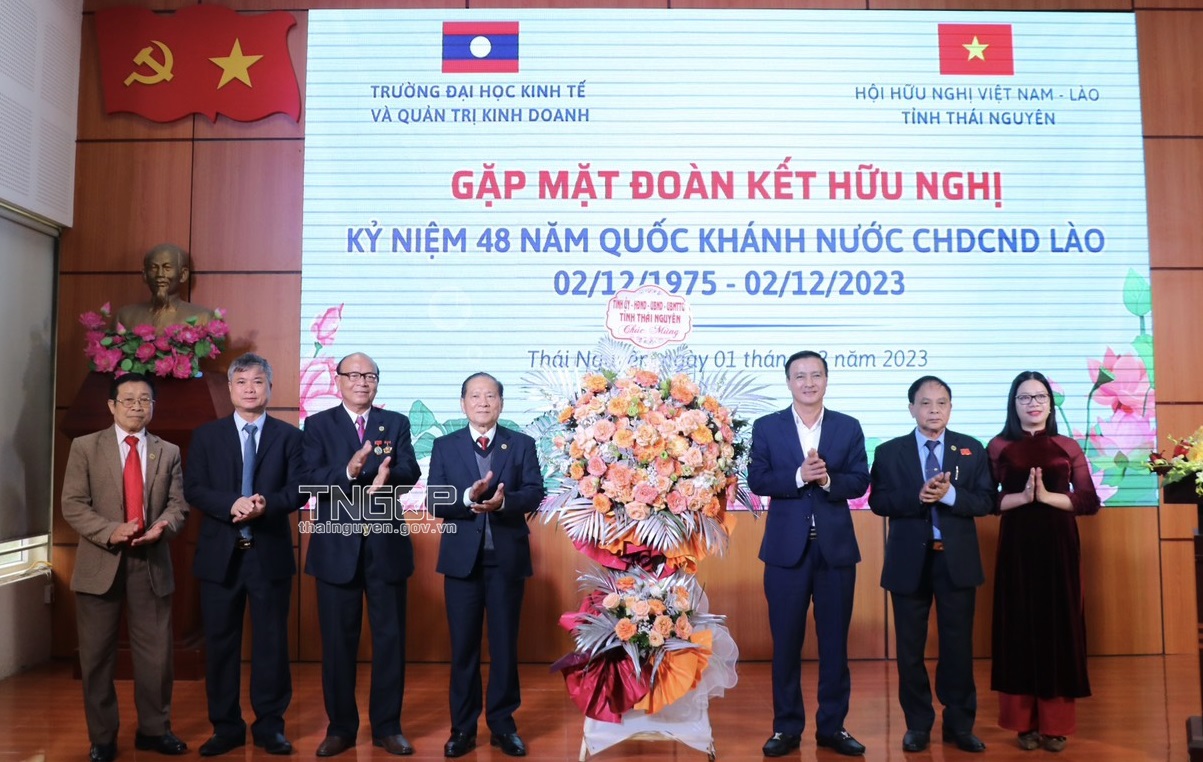 On December 1 morning, the Vietnam - Laos Friendship Association of Thai Nguyen province in collaboration with the University of Economics and Business Administration - Thai Nguyen University organized a Meeting of Solidarity and Friendship to commemorate the 48th anniversary of the National Day of the Lao People's Democratic Republic (December 2, 1975 - December 2, 2023).